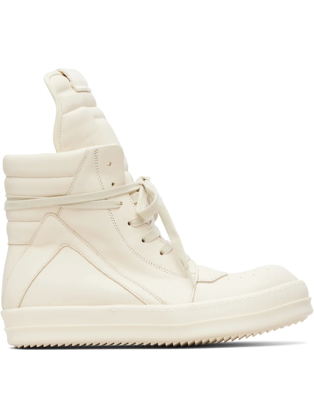 High-top buffed leather sneakers. · Perforations at toe · Lace-up closure · Webbing pull-loop at extended padded tongue · Quilted padded collar · Zip closure at inner side · Treaded rubber sole Supplier color: Milk/Milk/Milk Upper: leather. Sole: rubber. Made in Italy 261232M236057