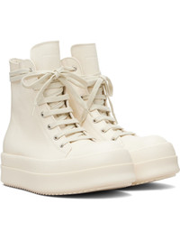 High-top vegetable-tanned grained leather sneakers. · Leather-cap toe · Lace-up closure · Zip closure and metal eyelets at inner side · Treaded platform rubber sole · Platform: H2.25" Supplier color: Milk/Milk/Milk Upper: leather. Sole: rubber. Made in Italy 261232M236025