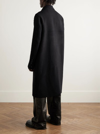Rick Owens' 'Officer' coat is modelled after classic military styles. Designed with wide notch lapels and signature 'Level' shoulder seams, it's been made in Italy from insulating Melton virgin wool and fastens with horn buttons along the double-breasted front. Size & Fit - Fits true to size. Take your normal size - Designed for a loose fit - Mid-weight, non-stretchy fabric - Model is shown wearing a M - Model measures: chest 38"/ 96cm, height 6'2"/ 188cm Details & Care - Black Melton virgin wool - Double-breasted button fastenings - 100% virgin wool; buttons: 100% horn (Buffalo); lining1: 100% cotton; lining2: 100% cupro - Fully lined