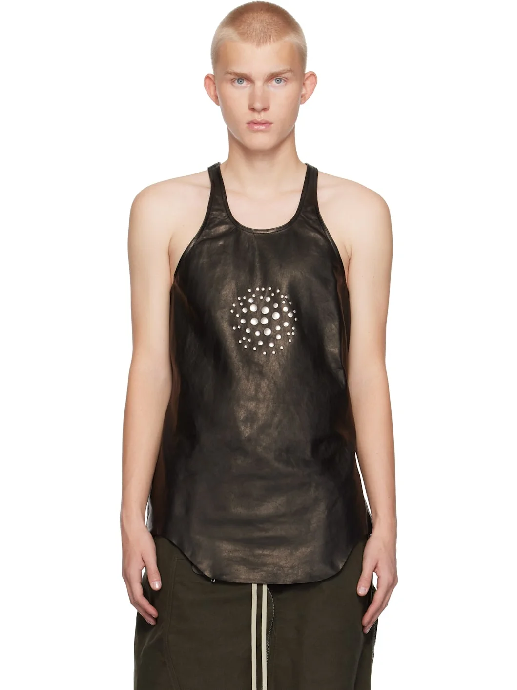 Grained lambskin tank top. · Scoop neck · Studded graphic at front · Shirttail hem · Zip vent at sideseam · Racer back Supplier color: Black 100% lambskin. Made in Italy 242232M214024