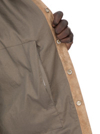 RICK OWENS SS26 TEMPLE OUTERSHIRT SUMI BROWN SUMI SUEDE LEATHER THIS OUTERSHIRT IS HIP LENGTH WITH A BOXY FIT. IT HAS A CENTER FRONT OPENING WITH VISIBLE SNAP CLOSURES, A CLASSIC SHIRT COLLAR, BEVELED SIDE SEAMS, SNAP CUFFS AND DOUBLE TOPSTITCHING. IT FEATURES TWO SQUARE CHEST POCKETS WITH BEVELED FLAPS, SIGNATURE LEVEL SHOULDER SEAMS AND A COTTON WEBBING STRAP WITH RIVET DETAIL ON THE BACK YOKE. THIS MEDIUMWEGHT CALF SUEDE LEATHER IS OVERDYED WITH A BLACK JAPANESE PIGMENT CALLED SUMI THAT IS MADE FROM CARBON POWDER AND TRADITIONALLY USED IN CALIGRAPHY. THE SKINS ARE THEN WASHED TO CREATE THE UNEVEN DYE EFFECT. IT HAS A NATURAL AND WAXY HANDFEEL ACHIEVED BY DRUMMING THE SKINS WITH WAX. SINCE THE SUMI PIGMENT USED TO DYE THIS LEATHER IS NATURAL, SHADINGS AND COLOR VARIATIONS WILL BE PRESENT. THE COLOR WILL CONTINUE TO EVOLVE AND CHANGE WITH WEAR AND AS IT GET EXPOSED TO LIGHT AND HUMIDITY. THIS TANNERY IS LWG CERTIFIED WITH A GOLD RATING. COLOR: SUMI BROWN MATERIAL: 100% CALF LEATHER BODY LINING 100% COTTON SLEEVES LINING 100% CUPRO MODEL IS 189CM TALL MODEL WEARS SIZE 48