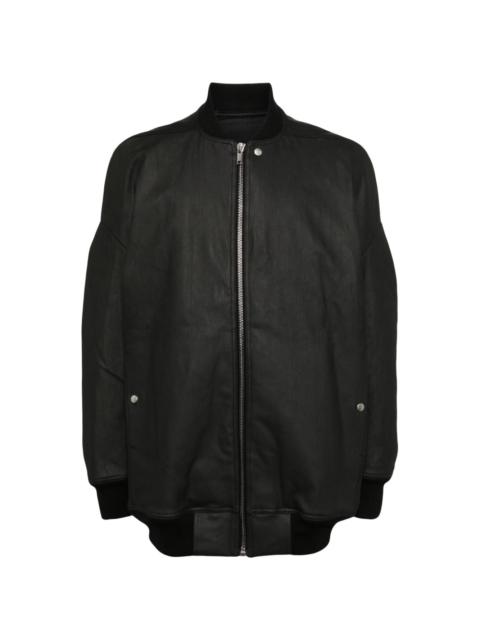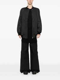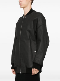 elongated bomber jacket Highlights - Black - Baseball collar - Front zip fastening - Two press-stud fastening side pockets - Long sleeves - Full lining - Internal pocket - Ribbed cuffs and hem Made in Italy Composition Filling: Polyester 90%, Acrylic 10% Outer: Cotton 91%, Elastane 6%, Rubber 3% Trims: Virgin Wool 100% Sleeve Lining: Cupro 100% SIZE & FIT Model measurements Height 6 ft 2 in(1.89 m) Bust/Chest 35.03 in(89 cm) Hips 34.64 in(88 cm) Waist 28.34 in(72 cm) FittingInformation Designed for an oversized fit, offering additional room throughout The ribbed hem offers a close, comfortable fit Made from a padded stretch fabric, giving it elasticity and a flexible fit