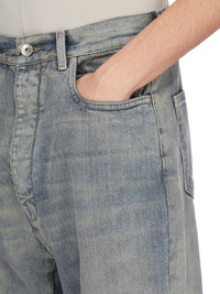RICK OWENS FW25 CONCORDIANS RUNWAY BOLANS IN DIRTY HUSTLER 14OZ HUSTLER SLUB DENIM THESE BOLANS ARE A HIGH WAISTED, SLIM FIT 6-POCKET JEAN WITH A FLOOR-LENGTH BOOT CUT. THEY CLOSE WITH A WAIST BUTTON AND CONCEALED BUTTON FLY. THEY HAVE A WAISTBAND WITH BELT LOOPS AND POCKET RIVETS AND BACK PATCH POCKETS WITH TOPSTITCHING THIS MEDIUMWEIGHT HUSTLER DENIM IS MADE ON A 14OZ JAPANESE INDIGO AND NATURAL SLUB DENIM WOVEN IN FUKUYAMA PREFECTURE BY A MILL FOUNDED IN 1893. THE READY GARMENT IS STONE WASHED WITH MINERAL DYES TO ACHIEVE THE HUSTLER WASH THIS FABRIC IS MADE USING GOTS CERTIFIED ORGANIC COTTON WHICH MEANS THE NATURAL FIBER IS GROWN WITHOUT HARMFUL CHEMICALS, LEAVING OUR SOIL, AIR AND WATER CLEANER FROM CONTAMINATES THIS GARMENT IS TREATED IN AN ITALIAN WASH HOUSE BASED IN THE VENETO AREA OF ITALY, THAT PRODUCES IN SMALLER TREATMENT BATHS TO REDUCE WATER WASTE AND UTILIZE A WATER PURIFYING PROCESS THAT ENABLES THEM TO RECYCLE A PORTION OF THE WATER USED. ALL OF OUR DENIM WASHES ARE ZDHC CERTIFIED COLOR: DIRTY HUSTLER MATERIAL: 100% COTTON POCKETS LINING 52% POLYESTER + 48% COTTON MODEL IS 189CM TALL MODEL WEARS SIZE 31