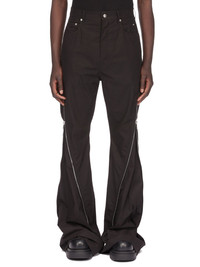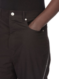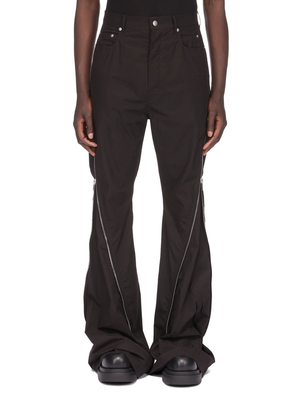 RICK OWENS SS24 LIDO BOLAN BANANA IN BLACK COTTON POPLIN THIS BOLAN BANANA IS A HIGH WAISTED, SLIM FIT 5 POCKET JEAN WITH A FLOOR-LENGTH BOOT CUT. THEY HAVE A WAISTBAND WITH BELT LOOPS AND POCKET RIVETS, AND CLOSE WITH A CONCEALED BUTTON FLY. THEY FEATURE A LONG ZIPPER RUNNING FROM CENTRE BUTT, CURVING AROUND THE HIP TO THE HEM. UNZIP AT BACK TO EXPOSE THE BUTT, AND ALSO UNZIP FROM THE HEM TO EXPOSE AN INNER, FLARED PANEL IN THE LEG THIS LIGHTWEIGHT CLASSIC POPLIN FABRIC HAS A SOFT HANDFEEL AND WASHED FINISH. THIS FABRIC IS MADE USING GOTS CERTIFIED ORGANIC COTTON WHICH MEANS THE NATURAL FIBER IS GROWN WITHOUT HARMFUL CHEMICALS, LEAVING OUR SOIL, AIR AND WATER CLEANER FROM CONTAMINATES - COLOR: BLACK - MATERIAL: 100% COTTON - MODEL IS 189CM TALL - MODEL WEARS SIZE 31