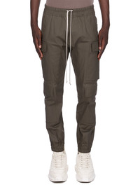 RICK OWENS FW25 CONCORDIANS MASTODON MEGACARGO IN BOSCO HEAVY COTTON POPLIN THESE MASTODON MEGACARGO PANTS ARE FULL LENGTH WITH A SLIM FIT AND AN ELASTICIZED WAIST WITH DRAWSTRING AND ELASTICATED ANKLES. THEY FEATURE TWO SQUARE CARGO POCKETS ON THE THIGH, WITH TWO BEVELED CARGO POCKETS BELOW, AND TWO SQUARE BACK POCKETS, ALL HAVE FLAPS WITH HOOK AND LOOP FASTENINGS AND TOPSTITCHING THIS MEDIUMWEIGHT COTTON POPLIN HAS A CRISP HANDFEEL AND WASHED FINISH THIS FABRIC IS MADE USING GOTS CERTIFIED ORGANIC COTTON WHICH MEANS THE NATURAL FIBER IS GROWN WITHOUT HARMFUL CHEMICALS, LEAVING OUR SOIL, AIR AND WATER CLEANER FROM CONTAMINATES COLOR: BOSCO MATERIAL: 97% COTTON + 3% ELASTANE BUTTONS 100% BUFFALO HORN MODEL IS 189CM TALL MODEL WEARS SIZE 48