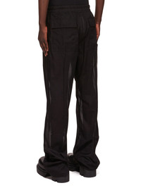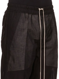 RICK OWENS SS25 HOLLYWOOD DIETRICH DRAWSTRING IN BLACK COTTON VOILE THESE DIETRICH DRAWSTRINGS ARE FULL-LENGTH WITH A LOOSE STRAIGHT LEG. THEY HAVE AN ELASTICIZED WAISTBAND WITH DRAWSTRING, AND A STITCHED FLY. THEY HAVE SIDE SEAM POCKETS AND TWO REAR SQUARE PATCH POCKETS WITH FLAPS THIS LIGHTWEIGHT AND SEMITRANSPARENT COTTON VOILE HAS A SOFT HANDFEEL. THIS FABRIC IS MADE USING GOTS CERTIFIED ORGANIC COTTON WHICH MEANS THE NATURAL FIBER IS GROWN WITHOUT HARMFUL CHEMICALS, LEAVING OUR SOIL, AIR AND WATER CLEANER FROM CONTAMINATES COLOR: BLACK MATERIAL: 100% COTTON BUTTONS 100% BUFFALO HORN MODEL IS 189CM TALL MODEL WEARS SIZE 48