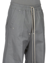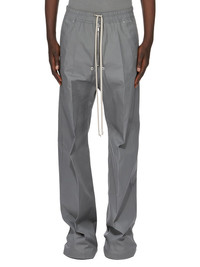 RICK OWENS FW25 CONCORDIANS WIDE BELA PANTS IN WASHED INDIGO HEAVY COTTON POPLIN THESE WIDE BELA PANTS ARE FULL-LENGTH WITH A LOW CROTCH AND WIDE LEG. THEY FEATURE AN ELASTICIZED WAISTBAND WITH DRAWSTRING AND A BELA EXPOSED CENTER ZIPPER WITH TWO SNAP DETAIL AT BOTTOM. THEY HAVE SIDE WELT POCKETS WITH RIVET AND EYELET DETAIL AND BACK POCKETS WITH FLAPS AND SNAP CLOSURES THIS MEDIUMWEIGHT COTTON POPLIN HAS A CRISP HANDFEEL AND WASHED FINISH THIS FABRIC IS MADE USING GOTS CERTIFIED ORGANIC COTTON WHICH MEANS THE NATURAL FIBER IS GROWN WITHOUT HARMFUL CHEMICALS, LEAVING OUR SOIL, AIR AND WATER CLEANER FROM CONTAMINATES COLOR: WASHED INDIGO MATERIAL: 97% COTTON + 3% ELASTANE MODEL IS 189CM TALL MODEL WEARS SIZE 48