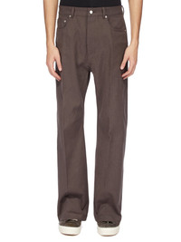 RICK OWENS FW25 CONCORDIANS RUNWAY GETH JEANS IN ASH COTTON WHIPCORD THESE GETH JEANS ARE A FULL LENGTH 5 POCKET JEAN WITH A LOW-RISE AND WIDE FIT. THEY HAVE A SILVER BUTTON FLY, BELT LOOPS AND POCKET RIVETS THIS MEDIUMWEIGHT COTTON WHIPCORD HAS A VISIBLE TWILL STRUCTURE AND A DRY HANDFEEL. IT IS WOVEN USING RAW COTTON YARNS MEANING IRREGULAR SLUBS ARE VISIBLE THROUGHOUT THE WEAVE. THE FABRIC HAS MINIMAL FINISHING IN ORDER TO KEEP THE NATURAL CHARACTERISTICS OF THE COTTON YARN THIS FABRIC WAS WOVEN ON A 1950’S VINTAGE SHUTTLE LOOM BY BONOTTO, A 4TH GENERATION TEXTILE MILL FOUNDED IN 1912 SITUATED JUST BELOW THE PREALPS IN VENETO, ITALY COLOR: ASH MATERIAL:100% COTTON MODEL IS 189CM TALL MODEL WEARS SIZE 31