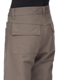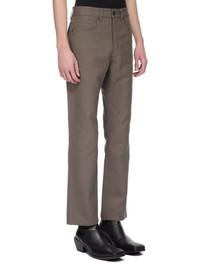 RICK OWENS SS25 HOLLYWOOD HEADON CUT IN DUST STRETCH TERRAIN COTTON THIS HEADON CUT IS AN ANKLE-LENGTH, 5 POCKET JEAN WITH A SLIM FIT. THEY HAVE A WAISTBAND WITH BELT LOOPS AND POCKET RIVETS. THEY CLOSE WITH A WAIST BUTTON AND CONCEALED BUTTON FLY. THEY HAVE BACK PATCH POCKETS, WITH SQUARE FLAPS AND TOPSTITCHING.THIS ITEM IS PART OF THE RICK OWENS BONOTTO CAPSULE COLLECTION AND FEATURES A SIGNATURE LABEL ON THE INTERIOR THIS MEDIUMWEIGHT COTTON IS COMPACT WITH A CRISPY HAND FEEL. IT HAS A SMALL STRETCH CONTENT FOR ADDED COMFORT. THE FABRIC HAS MINIMAL FINISHING IN ORDER TO KEEP THE NATURAL CHARACTERISTICS OF THE YARNS. THIS FABRIC WAS WOVEN ON A 1950’S VINTAGE SHUTTLE LOOM BY BONOTTO, A 4TH GENERATION TEXTILE MILL FOUNDED IN 1912 SITUATED JUST BELOW THE PREALPS IN VENETO, ITALY. COLOR: DUST MATERIAL: 91% COTTON 7% POLYAMIDE 2% ELASTANE MODEL IS 189CM TALL MODEL WEARS SIZE 31