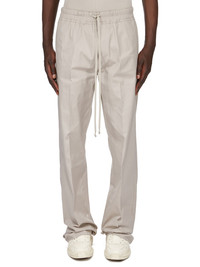 RICK OWENS FW25 CONCORDIANS DIETRICH DRAWSTRING IN PEARL HEAVY COTTON POPLIN THESE DIETRICH DRAWSTRINGS ARE FULL-LENGTH WITH A LOOSE STRAIGHT LEG. THEY HAVE AN ELASTICIZED WAISTBAND WITH DRAWSTRING, AND A STITCHED FLY. THEY HAVE SIDE SEAM POCKETS AND TWO REAR SQUARE PATCH POCKETS WITH FLAPS THIS MEDIUMWEIGHT COTTON POPLIN HAS A CRISP HANDFEEL AND WASHED FINISH THIS FABRIC IS MADE USING GOTS CERTIFIED ORGANIC COTTON WHICH MEANS THE NATURAL FIBER IS GROWN WITHOUT HARMFUL CHEMICALS, LEAVING OUR SOIL, AIR AND WATER CLEANER FROM CONTAMINATES COLOR: PEARL MATERIAL: 97% COTTON + 3% ELASTANE BUTTONS 100% BUFFALO HORN MODEL IS 189CM TALL MODEL WEARS SIZE 48