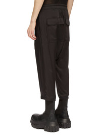 RICK OWENS FW24 PORTERVILLE DRAWSTRING CROPPED IN BLACK WASHED CHARMEUSE THESE DRAWSTRING CROPPED PANTS ARE ABOVE-ANKLE LENGTH, WITH A DROPPED CROTCH. THEY HAVE AN ELASTICIZED WAISTBAND WITH DRAWSTRING, A CONCEALED FLY, AND CREASES IN THE FRONT AND BACK LEG. THEY FEATURE TWO SIDE FRONT POCKETS AND TWO SQUARE BACK POCKETS WITH FLAPS AND TOPSTITCHING THIS LIGHTWEIGHT AND FLUID CHARMEUSE IS HAS A SEMI-SHINY SURFACE AND WASHED FINISH. THIS FABRIC IS MADE FROM FSC® CERTIFIED VISCOSE WHICH ENSURES THAT THE FIBERS ARE PRODUCED FROM RESPONSIBLY MANAGED SOURCES AND NO DEFORESTATION OCCURS - COLOR: BLACK - MATERIAL: 61% ACETATE + 39% VISCOSE - BUTTONS 100% BUFFALO HORN - MODEL IS 189CM TALL - MODEL WEARS SIZE 48