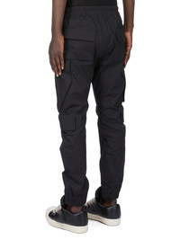 RICK OWENS SS25 HOLLYWOOD MASTODON MEGACARGO IN BLACK HEAVY COTTON POPLIN THESE MASTODON MEGACARGO PANTS ARE FULL LENGTH, WITH A SLIM FIT, AND AN ELASTICIZED WAIST WITH DRAWSTRING AND ELASTICIZED ANKLES. THEY FEATURE TWO SQUARE CARGO POCKETS ON THE THIGH, WITH TWO BEVELED CARGO POCKETS BELOW, AND TWO SQUARE BACK POCKETS, ALL HAVE FLAPS WITH HOOK AND LOOP FASTENINGS AND TOPSTITCHING THIS MEDIUMWEIGHT COTTON POPLIN HAS A CRISP HANDFEEL AND WASHED FINISH THIS FABRIC IS MADE USING GOTS CERTIFIED ORGANIC COTTON WHICH MEANS THE NATURAL FIBER IS GROWN WITHOUT HARMFUL CHEMICALS, LEAVING OUR SOIL, AIR AND WATER CLEANER FROM CONTAMINATES COLOR: BLACK MATERIAL: 97% COTTON + 3% ELASTANE BUTTONS 100% BUFFALO HORN MODEL IS 189CM TALL MODEL WEARS SIZE 48