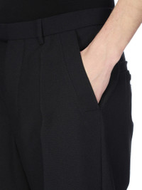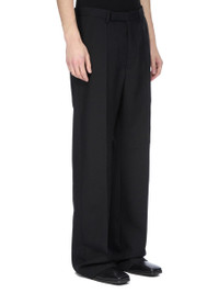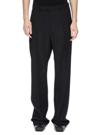 RICK OWENS FW25 CONCORDIANS TAILORED GETH IN BLACK GRAIN DE POUDRE THESE TAILORED GETH ARE FULL LENGTH WITH A MID-RISE AND WIDE FIT. THEY HAVE A CLASSIC TAILORED WAISTBAND WITH A CONCEALED ZIPPER AND WRAP BUTTON CLOSURE, BACK WELT POCKETS WITH BUTTONS, AND PRESSED CREASES ON THE FRONT AND BACK LEG. THIS FABRIC IS MADE FROM RWS CERTIFIED VIRGIN WOOL WHICH ENSURES A HIGH STANDARD IN ANIMAL WELFARE, ENVIRONMENTAL SUSTAINABILITY AND SOCIAL RESPONSIBILITY. EACH BALE OF WOOL IS TRACEABLE BACK TO ITS SOURCE. COLOR: BLACK MATERIAL: 100% NEW WOOL BUTTONS 100% BUFFALO HORN MODEL IS 189CM TALL MODEL WEARS SIZE 48
