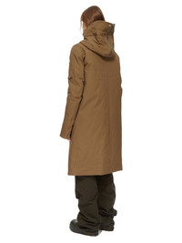 RICK OWENS FW24 PORTERVILLE MEGAPARKA IN BEAN HEAVY COTTON POPLIN THIS MEGAPARKA IS BELOW THE KNEE-LENGTH AND HAS AN STRAIGHT FIT. IT HAS A CENTRE FRONT ZIPPER CLOSURE THAT IS COVERED BY A FRONT PANEL SECURED WITH AN INVISIBLE SNAP. IT FEATURES A LARGE HOOD WITH CENTRE ZIPPER THAT CAN BE WORN UNZIPPERED AS AN EXTRA LARGE COLLAR LAYING OVER THE SHOULDERS. IT HAS POCKETS IN THE SIDE SEAMS, A BACK YOKE AND TOPSTITCHINGIT IS FULLY LINED AND HAS TWO INSIDE SNAP POCKETS THIS MEDIUMWEIGHT COTTON POPLIN HAS A CRISP HANDFEEL AND WASHED FINISH THIS FABRIC IS MADE USING GOTS CERTIFIED ORGANIC COTTON WHICH MEANS THE NATURAL FIBER IS GROWN WITHOUT HARMFUL CHEMICALS, LEAVING OUR SOIL, AIR AND WATER CLEANER FROM CONTAMINATES - COLOR: BEAN - MATERIAL: 97% COTTON + 3% ELASTANE - FRONT AND POCKETS LINING 100% COTTON - BACK AND HOOD AND SLEEVES LINING 100% CUPRO - PADDING 90% POLYESTER + + 10% ACRYLIC - MODEL IS 189CM TALL - MODEL WEARS SIZE 48