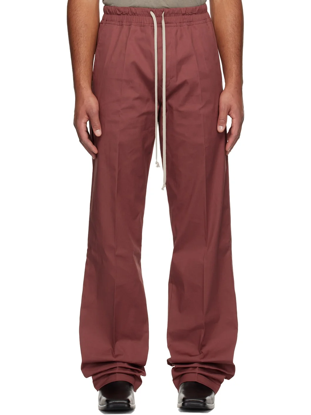 Heavyweight stretch organic cotton poplin trousers. · GOTS-certified cotton · Loose-fit · Straight-leg · Drawstring at elasticized waistband · Four-pocket styling · Button fly · Creased legs · Horn hardware Supplier color: Rosewood 97% cotton, 3% elastane. Made in Italy 252232M191023