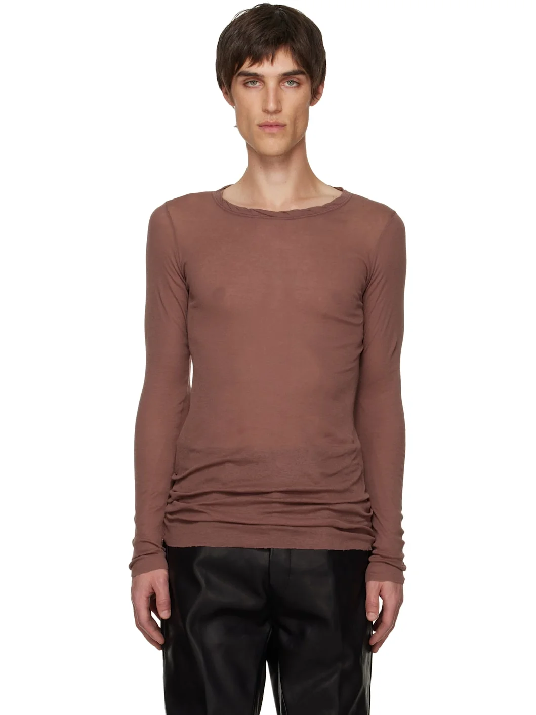 Semi-sheer cotton jersey T-shirt. · Rib-knit crewneck · Raw edge at hem and cuffs · Central seam at back Supplier color: Rosewood 100% cotton. Made in Italy 252232M213135