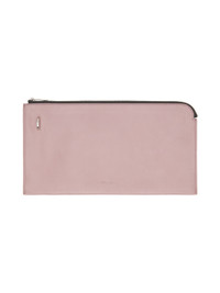 Lightweight vegetable-tanned grained calfskin wallet in pink. · D-ring and logo embossed at face · Zip closure · Unlined · H6.75" x W12.5" Supplier color: Dusty pink Leather. Made in Italy 241232M164000