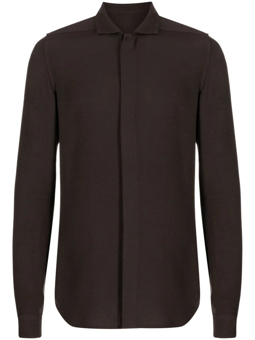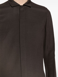 plain long-sleeve shirt Highlights - Brown - Wool blend - Classic collar - Concealed front fastening - Long sleeves - Curved hem Made in Italy Composition Viscose 87%, Wool 13% SIZE & FIT Model measurements Height 6 ft 2 in(1.87 m) Bust/Chest 33.07 in(84 cm) Hips 35.43 in(90 cm) Waist 26.77 in(68 cm) FittingInformation Designed for a regular fit, allowing for a comfortably loose fit throughout the body Made from a midweight non-stretch fabric This piece fits true to size – take your usual size Washing instructions Dry Clean Only