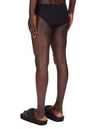 RICK OWENS SS25 HOLLYWOOD HYDRA SWIMMER IN BLACK STRETCH SWIM JERSEY THIS HYDRA SWIMMER IS SKIN TIGHT AND HAS AN ELASTICIZED WAISTBAND. IT FEATURES A TRIPLE SIDED HYDRA HOOK ON THE RIGHT HIP THIS MEDIUMWEIGHT CLASSIC SWIMWEAR JERSEY HAS COMFORT STRETCH, A MATTE FINISH AND IS PRODUCED ESPECIALLY FOR SWIMWEAR WITH HIGH UV AND CHLORINE RESISTANCE. IT IS MADE USING ECONYL® RECYCLED POLYAMIDE, MADE FROM 100% WASTE MATERIAL THAT WOULD OTHERWISE POLLUTE THE EARTH. COLOR: BLACK MATERIAL: 79% POLYAMIDE + 21% ELASTANE MODEL IS 189CM TALL MODEL WEARS SIZE 48