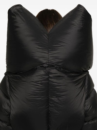 black recycled polyamide down-feather filling quilted padded design off-centre front zip fastening pointed shoulder pads long sleeves ribbed cuffs and hem quilted lining This item is made from at least 50% recycled or upcycled materials. For recycled synthetic clothing products, we highly recommend using a microfibre-catching washing bag to ensure that no microplastics that can pollute water are released in the process. Learn more about what makes a product Conscious on our Conscious Criteria page Size & Fit Model Measurements: Height: 1.86 m Bust/Chest: 92.0 cm Hips: 96.0 cm Waist: 78.0 cm Model wears size 50 Fabric and Care Designer Style ID: RR02D6715NPDX Designer Colour: 09 BLACK Composition: Outer: Virgin wool 100%, Recycled polyamide 100%, Recycled polyamide 100%; Lining: Goose down 90%, Duck feathers 10% Washing instructions: Dry Clean Only Made in Italy