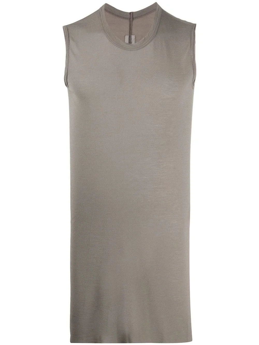 long crew neck tank top Dust grey silk blend long crew neck tank top from Rick Owens featuring a stretch fit, a sleeveless design and a straight hem. Made in Italy Composition Viscose 88%, Silk 12% SIZE & FIT Model measurements Height 6 ft 1 in(1.85 m) Bust/Chest 37.79 in(96 cm) Hips 37.4 in(95 cm) Waist 30.7 in(78 cm) FittingInformation This piece fits true to size. We recommend you get your regular size Cut for a slim fit Made with a mid-weight fabric Washing instructions Hand Wash