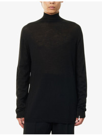 PRODUCT DETAILS - Rick Owens wool-knit jumper - 100% wool - Relaxed fit, turtle neck, long sleeves, ribbed trims - Hand wash - Made in Italy - Model is 6ft 2in/1.88m and wears a size medium - Lightweight, slight stretch Ref: R04490432