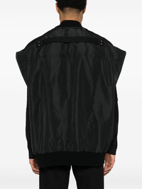 ribbed-collar padded gilet Highlights - Black - Shell - Padded design - Panelled design - Ribbed band collar - Sleeveless - Two side inset pockets - Grosgrain ribbon trim to the rear - Internal zip-fastening pockets - Full lining - Ribbed hem - Front zip fastening Made in Italy Composition Lining: Cashmere 97%, Recycled Polyester 90%, Viscose 53%, Cupro 47%, Acrylic (Fiber) 10%, Wool 3% Outer: Polyester 100% SIZE & FIT Model measurements Height 6 ft 2 in(1.89 m) Bust/Chest 35.82 in(91 cm) Hips 36.22 in(92 cm) Waist 28.34 in(72 cm) FittingInformation Designed for an oversized fit, offering additional room throughout The ribbed hem offers a close, comfortable fit Made from a padded non-stretch fabric, giving it no natural elasticity This piece fits true to size – take your usual size