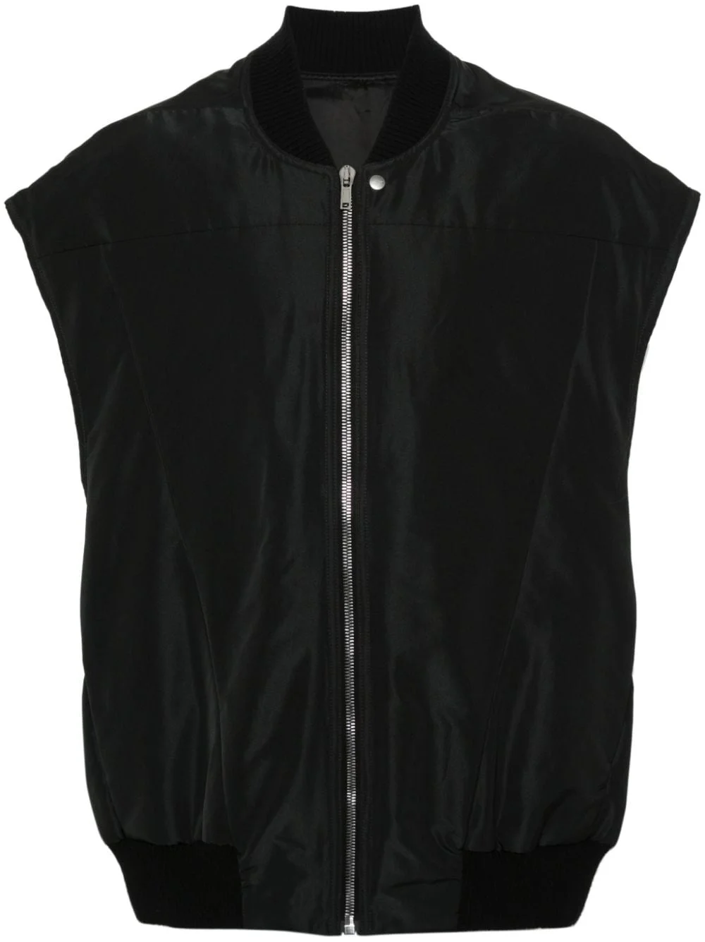 ribbed-collar padded gilet Highlights - Black - Shell - Padded design - Panelled design - Ribbed band collar - Sleeveless - Two side inset pockets - Grosgrain ribbon trim to the rear - Internal zip-fastening pockets - Full lining - Ribbed hem - Front zip fastening Made in Italy Composition Lining: Cashmere 97%, Recycled Polyester 90%, Viscose 53%, Cupro 47%, Acrylic (Fiber) 10%, Wool 3% Outer: Polyester 100% SIZE & FIT Model measurements Height 6 ft 2 in(1.89 m) Bust/Chest 36.22 in(92 cm) Hips 35.82 in(91 cm) Waist 28.54 in(72.5 cm) FittingInformation Designed for an oversized fit, offering additional room throughout The ribbed hem offers a close, comfortable fit Made from a padded non-stretch fabric, giving it no natural elasticity This piece fits true to size – take your usual size Washing instructions Dry Clean Only