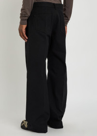Info & Care Rick Owens twill jeans High-rise fit, wide-leg cut, belt loops, five pockets, pressed crease through legs Partially concealed button fastenings through front 100% cotton Dry clean Size & Fit Front rise: 14 inches/ 35.5cm Inside leg length: 30.5 inches/ 77.5cm Midweight Model is 6'1"/ 185cm, chest size 38.5 inches and wears a size;W32