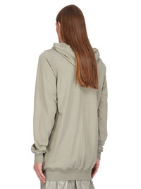 RICK OWENS SS25 HOLLYWOOD HOODIE IN CELADON HEAVY JERSEY THIS HOODIE IS BELOW-HIP LENGTH WITH LONG SLEEVES. IT FEATURES A DRAWSTRING HOOD, RIB CUFFS AND WAISTBAND. IT HAS SIGNATURE LEVEL SEAMS ON THE SHOULDERS AND SINGLE SEAM RUNNING DOWN THE CENTER BACK SPINE THIS HEAVYWEIGHT JERSEY IS COMPACT WITH A DRY HANDFEEL. THIS JERSEY IS MADE USING GOTS CERTIFIED ORGANIC COTTON WHICH MEANS THE NATURAL FIBER IS GROWN WITHOUT HARMFUL CHEMICALS, LEAVING OUR SOIL, AIR AND WATER CLEANER FROM CONTAMINATES COLOR: CELADON MATERIAL: 100% COTTON MODEL IS 189CM TALL MODEL WEARS SIZE S