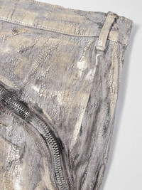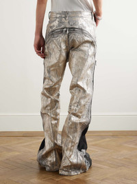Bolan Flared Zip-Embellished Distressed Metallic Jeans
