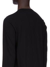 RICK OWENS FW25 CONCORDIANS LEVEL LS T IN BLACK CLASSIC COTTON JERSEY THIS LEVEL LS T IS BELOW HIP LENGTH WITH LONG SLEEVES. IT HAS A RIBBED ROUND NECK AND CUFFS. IT FEATURES THE SIGNATURE LEVEL SHOULDER SEAMS AND SINGLE SEAM RUNNING DOWN THE CENTRE BACK SPINE THIS MEDIUMWEIGHT CLASSIC COTTON JERSEY IS COMPACT WITH A DRY HANDFEEL THIS JERSEY IS MADE USING GOTS CERTIFIED ORGANIC COTTON WHICH MEANS THE NATURAL FIBER IS GROWN WITHOUT HARMFUL CHEMICALS, LEAVING OUR SOIL, AIR AND WATER CLEANER FROM CONTAMINATES WE STRIVE TO KEEP OUR PRODUCTION AS LOCAL AS POSSIBLE. THE FULL MANUFACTURING CYCLE OF THIS PRODUCT, FROM THE MATERIAL KNITTING TO SEWING AND FINISHING, WAS UNDERTAKEN CLOSE TO OUR HOME BASE IN CONCORDIA, ITALY COLOR: BLACK MATERIAL: 100% COTTON MODEL IS 189CM TALL MODEL WEARS SIZE S