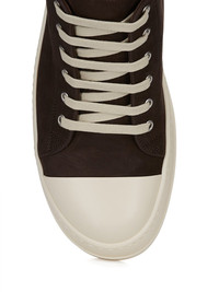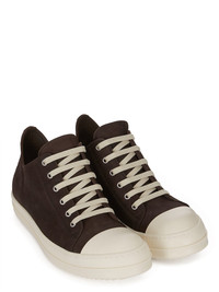 RICK OWENS FW25 CONCORDIANS LOW SNEAKS IN BROWN/MILK NUBUCK THESE LOW SNEAKS ARE UNDER ANKLE HEIGHT, RISING AT THE BACK AND FEATURE SIX EYELETS, LACES, TOE CAPS AND SHARK-TOOTHED BUMPER SOLES THIS HEAVYWEIGHT BULL LEATHER HAS A BRUSHED NUBUCK FINISH AND WAXY HANDFEEL. BECAUSE THIS SKIN IS NAKED, NOT FINISHED USING ANY PIGMENTS COVERING THE SKIN, NATURAL MARKINGS AND SHADINGS ARE VISIBLE WHICH MAKES EACH SKIN AND PRODUCT UNIQUE THIS TANNERY IS LWG CERTIFIED WITH A SILVER RATING COLOR: BROWN/MILK MATERIAL: UPPER 100% CALF LEATHER LINING 100% CALF LEATHER INSOLE 100% CALF LEATHER SOLE 100% THERMOPLASTIC POLYURETHANE SOLE HEIGHT 3.5CM