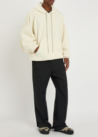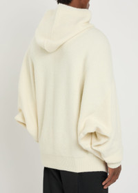 Info & Care Rick Owens wool-blend jumper Drawstring hood, dropped shoulders, pouch pocket, ribbed trims Slips on 48% alpaca wool, 30% polyamide, 20% wool, 2% elastane Hand wash Size & Fit Length shoulder to hem: 28 inches/ 71cm Midweight Relaxed fit Model is 6'1"/ 185cm, chest size 38.5 inches and wears a size medium