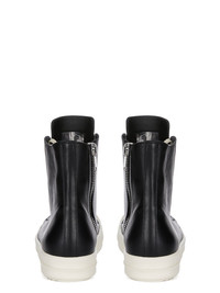 RICK OWENS FW25 CONCORDIANS SNEAKERS IN BLACK/MILK/MILK FULL GRAIN COW LEATHER THESE SNEAKERS ARE ABOVE-ANKLE HEIGHT AND FEATURE SEVEN EYELETS, LACES, A ZIPPER ON THE INSIDE ANKLE FOR EASY FASTENING, TOE CAPS AND SHARK-TOOTHED BUMPER SOLES THIS MEDIUMWEIGHT FULL GRAIN COW LEATHER HAS A FLAT AND MATTE SURFACE FINISH AND IS SPECIFICALLY TANNED FOR SHOES WITH AN ABRASION-RESISTANT FINISH THIS TANNERY IS LWG CERTIFIED WITH A BRONZE RATING COLOR: BLACK/MILK/MILK MATERIAL: UPPER 100% COW LEATHER TOE 100% CALF LEATHER LINING 100% CALF LEATHER INSOLE 100% CALF LEATHER SOLE 100% THERMOPLASTIC RUBBER SOLE HEIGHT 3.5CM