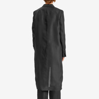 Inspired by all things glamour, this Rick Owens Coat is made using a soft cotton body with smooth silk sleeves. Single breasted and designed with a muted palette, this wardrobe staple is a versatile day to night piece. - 100% Cotton - Peak Lapel - Button Closure - Side Pockets