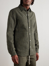 If you know Rick Owens, you'll be able to spot this overshirt by the label's 'level' seams at the shoulders. It's been made in Italy from Melton wool – a water-repellent cloth with a felt-like texture – and has two utilitarian-inspired patch pockets at the chest. Size & Fit - Fits true to size. Take your normal size - Designed for a slightly loose fit - Sized for layering - Mid-weight, non-stretchy fabric - Model is shown wearing an IT 48 - Model measures: chest 38"/ 96cm, height 6'0"/ 183cm Details & Care - Tonal-green Melton wool - Snap fastenings - 100% wool - Dry clean