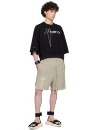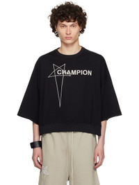GOTS-certified organic cotton jersey T-shirt. · Rib-knit crewneck and cropped hem · Logo embroidered at front · Offset shoulder seams · Dropped shoulders · Embroidered logo patch at cuff · Central seam at back Part of the Rick Owens x Champion collaboration. Supplier color: Black Body: 100% organic cotton. Trim: 95% cotton, 5% elastane. Made in Italy 252232M213003