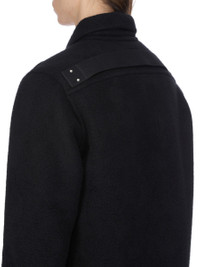 RICK OWENS FW25 CONCORDIANS BRAD JKT IN BLACK DOUBLE CASHMERE THIS BRAD JACKET IS HIP LENGTH WITH A STRAIGHT FIT AND LONG SLEEVES. IT HAS A CENTRE FRONT ZIP OPENING, CLASSIC COLLAR, DIAGONAL SIDE FRONT WELT POCKETS WITH AN INTERNAL SNAP, SNAP CUFFS AND DOUBLE TOPSTITCHING. IT FEATURES A CONCEALED ZIP POCKET IN THE LEFT FOREARM, THE SIGNATURE LEVEL SHOULDER SEAMS AND A COTTON WEBBING STRAP WITH RIVET DETAIL ON THE BACK YOKEIT IS FULLY LINED WITH TWO INTERNAL ZIPPED POCKETS THIS HEAVYWEIGHT PURE CASHMERE QUALITY IS WOVEN ON A DOUBLE WARP IN ORDER TO ACHIEVE ITS HEAVINESS AND CREATE A DOUBLE-FACED FABRIC. THE FINISHED ROLL IS THEN WASHED TO ADD SOFTNESS AND TEXTURE THIS PRODUCT WAS MADE USING GRS CERTIFIED RECYCLED CASHMERE BECAUSE IT FINDS A PURPOSE FOR RAW MATERIALS THAT WOULD OTHERWISE BE DISCARDED COLOR: BLACK MATERIAL: 100% CASHMERE POCKETS LINING 100% COTTON MODEL IS 189CM TALL MODEL WEARS SIZE 48