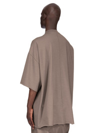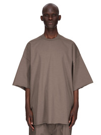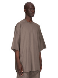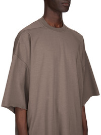 RICK OWENS SS25 HOLLYWOOD TOMMY T IN DUST HEAVY JERSEY THIS TOMMY T IS BELOW-HIP LENGTH WITH A JUMBO OVERSIZED FIT. IT HAS WIDE, SHORT SLEEVES WITH A DROPPED ARMHOLE AND A RIBBED CREWNECK. IT FEATURES SIGNATURE FRONT LEVEL SHOULDER SEAMS THIS HEAVYWEIGHT JERSEY IS COMPACT WITH A DRY HANDFEEL. THIS JERSEY IS MADE USING GOTS CERTIFIED ORGANIC COTTON WHICH MEANS THE NATURAL FIBER IS GROWN WITHOUT HARMFUL CHEMICALS, LEAVING OUR SOIL, AIR AND WATER CLEANER FROM CONTAMINATES COLOR: DUST MATERIAL: 100% COTTON MODEL IS 189CM TALL ITEM IS AVAILABLE IN ONE SIZE