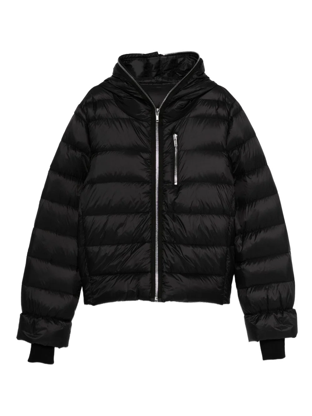 padded hooded jacket Highlights - Black - Goose down - Padded design - Zip fastening Made in Italy Composition Outer: Recycled Nylon 100% Lining: Goose Down 90%, Goose Feather 10% SIZE & FIT Model measurements Height 6 ft 2 in(1.87 m) Bust/Chest 36.41 in(92.5 cm) Hips 37 in(94 cm) Waist 29.52 in(75 cm) Washing instructions Read Manufacturer Guidelines