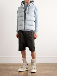 Rick Owens' Italian-made gilet has an extra long zip fastening that extends through the hood and convenient eye cutouts, so you can wear it completely closed on chillier days. It's crafted from quilted nylon and filled with down that's both warming and lightweight. Size & Fit - Fits true to size. Take your normal size - Designed for a relaxed fit - Quilted, non-stretchy fabric - Model is shown wearing an IT 48 - Model measures: chest 38"/ 96cm, height 6'1"/ 185cm Details & Care - Light-blue nylon - Zip fastening - 100% polyamide; filling: 90% down, 10% feathers (Goose) - Dry clean