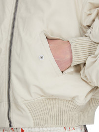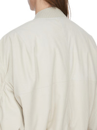 RICK OWENS SS26 TEMPLE SECCHIA FLIGHT REVERSIBLE IN SAND/EUCA FEATHER NAPPA THIS SECCHIA FLIGHT IS OVERSIZED WITH LONG, GATHERED SLEEVES. IT HAS A RIBBED NECK, WRIST AND WAISTBAND FEATURES A CENTRE FRONT ZIPPER. IT HAS FRONT SIDE SNAP CLOSURE POCKETS WITH FLAPS. IT IS FULLY LINED AND HAS TWO INTERNAL ZIPPERED POCKETS. THIS LIGHTWEIGHT LAMB LEATHER IS MATTE AND SMOOTH WITH A SOFT AND FLUID HANDFEEL. THIS LEATHER IS MADE BY A THIRD GENERATION FAMILY OWNED TANNERY IN THE SOUTH OF ITALY. COLOR: SAND/EUCA MATERIAL:100% LAMB LEATHER KNIT RIB COLLAR, WRIST BAND AND BOTTOM 92% NEW WOOL + + 6% NYLON + 2% ELASTANE POCKETS LINING 100% COTTON PADDING 100% POLYESTER MODEL IS 189CM TALL MODEL WEARS SIZE 48