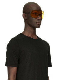 RICK OWENS SHIELD SUNGLASSES THESE SHIELD SUNGLASSES FEATURE A SURGICAL STAINLESS STEEL FRAME, A SINGLE VOLUMINOUS CURVED CORRESPONDING LENS SECURED WITH SCREWS AND A RUBBER NOSE PAD. THEY HAVE SLIM METAL ARMS WITH THE RICK OWENS LOGO ON THE INSIDE RIGHT TEMPLE. NOT SUITABLE FOR CONVERSION INTO PRESCRIPTION GLASSES - COLOR: BLACK, YELLOW - FRAME: 100% STAINLESS STEEL - LENSES: 100% NYLON - MEASURES: 20CM X 8CM X 6CM -NOT SUITABLE FOR CONVERSION INTO PRESCRIPTION GLASSES
