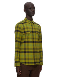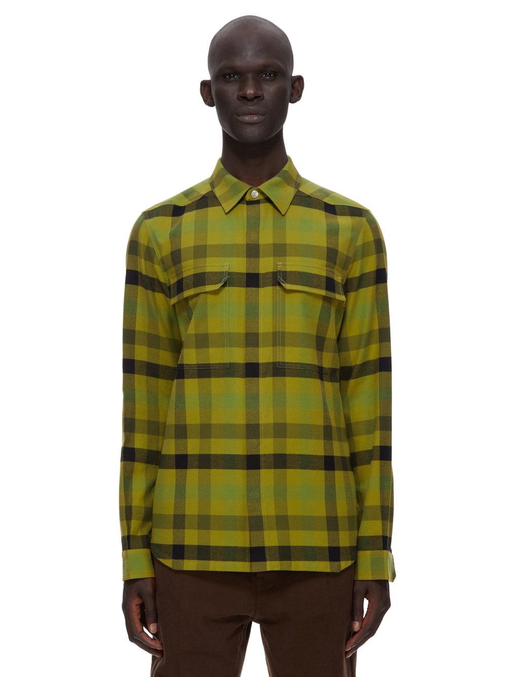 RICK OWENS FW23 LUXOR OUTERSHIRT IN ACID COTTON PLAID THIS OUTERSHIRT IS BELOW HIP LENGTH WITH A BOXY FIT. IT HAS A CENTRE FRONT OPENING WITH VISIBLE SNAP CLOSURES, A CLASSIC SHIRT COLLAR, BEVELED SIDE SEAMS WITH SPLITS, SNAP CUFFS AND DOUBLE TOPSTITCHING. IT FEATURES TWO CHEST POCKETS WITH BEVELED EDGE FLAP AND VISIBLE SNAP CLOSURES. IT HAS THE SIGNATURE LEVEL SHOULDER SEAMS AND A COTTON WEBBING STRAP WITH RIVET DETAIL ON THE BACK YOKE THIS LIGHTWEIGHT COTTON FLANNEL HAS A SOFT AND BRUSHED HANDFEEL. EACH COLOR COMBINATION IS CREATED BY DYEING THE COTTON YARNS INDIVIDUALLY INTO FOUR DIFFERENT COLORS AND WEAVING THEM TOGETHER IN A SQUARE PLAID PATTERN. - COLOR: ACID PLAID - MATERIAL: 100% COTTON - YOKE LINING 100% COTTON - MODEL IS WEARING SIZE 48 - MODEL IS 189 CM TALL