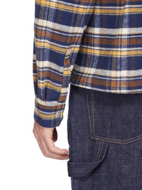 DRKSHDW FW25 CONCORDIANS CROPPED OUTERSHIRT IN GASOLINE PLAID COTTON PLAID THIS CROPPED OUTERSHIRT IS ABOVE HIP LENGTH WITH A STRAIGHT, BOXY FIT AND LONG SLEEVES. IT HAS A CENTRE FRONT OPENING WITH VISIBLE YKK SNAPS (MADE IN JAPAN), A COLLAR, A HEM WITH BEVELED SIDE SEAMS AND CHAINSTITCH THREAD RUN-OFF, AND SNAP CUFFS. IT FEATURES TWO SQUARE POCKETS ON THE CHEST WITH FLAPS AND BEVELED CORNERS, SIGNATURE LEVEL SHOULDER SEAMS AND DOUBLE STITCHED SEAMSIT HAS A LINED REAR YOKE AND AN INTERNAL, BLACK LEATHER DRKSHDW DEBOSSED PATCH BELOW THE COLLAR THIS MEDIUMWEIGHT BRUSHED COTTON PLAID FABRIC IS WOVEN IN IBARA CITY, OKAYAMA PREFECTURE, JAPAN, BY YAMAASHI ORIMONO (EST. 1945). IT HAS A SOFT AND BRUSHED HANDFEEL COLOR: GASOLINE PLAID MATERIAL: 100% COTTON MODEL IS 189CM TALL MODEL WEARS SIZE S