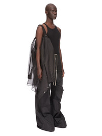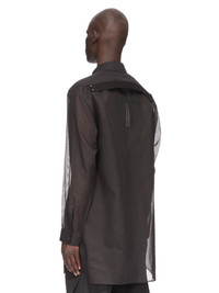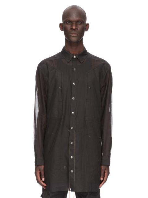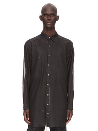 RICK OWENS SS24 LIDO JUMBO FOGPOCKET OUTERSHIRT IN BLACK COTTON ORGANDY THIS JUMBO FOGPOCKET OUTERSHIRT IS MID-THIGH LENGTH WITH A JUMBO BOXY FIT. IT HAS A CENTRE FRONT OPENING WITH SNAPS THAT ARE CONCEALED WHEN CLOSED, A CLASSIC SHIRT COLLAR, BEVELED SIDE SEAMS WITH SPLITS, SNAP CUFFS AND DOUBLE TOPSTITCHING. IT FEATURES TWO FOG BREAST POCKETS WITH A VERTICAL OPENING AND INTERNAL SNAP, SIGNATURE LEVEL SHOULDER SEAMS AND A COTTON WEBBING STRAP WITH RIVET DETAIL ON THE BACK YOKETHIS FABRIC IS TRANSPARENT THIS LIGHTWEIGHT AND SEMI-TRANSPARENT COTTON ORGANDY HAS A STIFF AND DRY HANDFEEL. THIS FABRIC IS MADE USING GOTS CERTIFIED ORGANIC COTTON WHICH MEANS THE NATURAL FIBER IS GROWN WITHOUT HARMFUL CHEMICALS, LEAVING OUR SOIL, AIR AND WATER CLEANER FROM CONTAMINATES - COLOR: BLACK - MATERIAL: 100% COTTON - MODEL IS 189CM TALL - MODEL WEARS SIZE 48