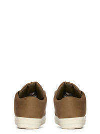 RICK OWENS FW24 PORTERVILLE RUNWAY JUMBOLACED PADDED LOW SNEAKS IN BEAN/MILK/MILK SIENA CALF LEATHER THESE JUMBOLACED PADDED LOW SNEAKS ARE UNDER ANKLE HEIGHT AND FEATURE EYELETS, JUMBO LACES, TOE CAPS AND SHARK TOOTHED BUMPER SOLES THIS MEDIUMWEIGHT CALF LEATHER IS VEG TANNED AND FINISHED USING NATURAL WAXES. IT IS SOFT WITH A WAXY AND SUPPLE HANDFEEL. TANNED IN THE NAPLES AREA OF ITALY AND HAND POLISHED TO ACHIEVE THE SEMI-SHINY SURFACE FINISH. VEG TANNING MEANS ONLY VEGETAL AND NATURAL TANNINS WERE USED IN THE PROCESS OF TANNING AND PRESERVING THIS LEATHER. - COLOR: BEAN/MILK/MILK - MATERIAL: UPPER 100% CALF LEATHER - TOE 100% CALF LEATHER - LINING 100% CALF LEATHER