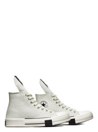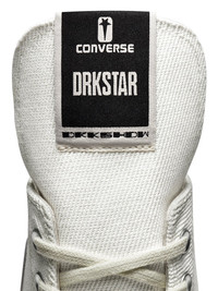 CONVERSE X DRKSHDW DRKSTAR HI IN WHITE. THESE CONVERSE X DRKSHDW DRKSTAR IN WHITE WAXED COTTON TWILL LACED HIGH TOP SHOE BASED ON THE CLASSIC CONVERSE 70’S CHUCKS, FEATURES A SIGNATURE DRKSHDW ELONGATED TONGUE WITH A CUSTOM BRANDED WRAP AROUND WOVEN LABEL BEARING THE MODEL NAME CONTRAST STITCHING AND LACES. SIGNATURE RICK OWENS MOLDED RUBBER HEEL AND MOLDED RUBBER TOE CAP SUPERIMPOSED ONTO THE CLASSIC 70’S CHUCKS RUBBER SOLE CUSTOM MOLDED DRKSHDW LICENSE PLATE WITH PENTAGRAM COLLAB LOGO CONVERSE ALL STAR LOGO ON SIDE WHITE UPPER AND WHITE RUBBER SOLE DELIVERED WITH WHITE LACES AND EXTRA BLACK LACES - COLOR: WHITE - UPPER: 100% COTTON - INSOLE: 100% COTTON - SOLE: 100% RUBBER PLEASE NOTE THE SHOE SIZE LISTED ON THE PRODUCT DESCRIPTION PAGE CORRESPONDS TO USA MEN'S SHOE SIZE WE STRONGLY RECOMMEND OUR CLIENTS TO CHECK THE SIZE CHART BEFORE PLACING AN ORDER TO AVOID ANY POTENTIAL INCONVENIENCE FEEL FREE TO CONTACT CUSTOMERCARE@RICKOWENS.EU FOR ANY ASSISTANCE