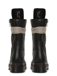 DR MARTENS x RICK OWENS FW22 STROBE CALF LENGTH BOOT IN BLACK MATTE GRAINY COW LEATHER. THESE DR MARTENS BOOTS ARE REIMAGINED BY RICK OWENS AND FEATURE EXAGGERATED LENGTH PEARL LACES AND PALLADIUM FINISH HARDWARE INCLUDING EYELETS, SPEED HOOKS AND SIDE ZIPPER. THE BOOT FEATURES AN EXTENDED GEOMETRIC TONGUE AND HAS A WOVEN DR MARTENS AIRWARE HEEL LOOP IN BLACK AND PEARL. THEY HAVE A 4CM HIGH DR MARTENS QUAD SOLE WITH THE DR MARTENS YELLOW WELT STITCH - COLOR: BLACK - MATERIAL: UPPER 100% COW LEATHER - LINING: 100% COW LEATHER - INSOLE: 100% COW LEATHER - SOLE: 100% POLIVINILCLORURO PLEASE NOTE THE SHOE SIZE LISTED ON THE PRODUCT DESCRIPTION PAGE CORRESPONDS TO UK SHOE SIZE WE STRONGLY RECOMMEND OUR CLIENTS TO CHECK THE SIZE CHART BEFORE PLACING AN ORDER TO AVOID ANY POTENTIAL INCONVENIENCE FEEL FREE TO CONTACT CUSTOMERCARE@RICKOWENS.EU FOR ANY ASSISTANCE